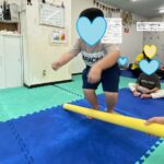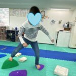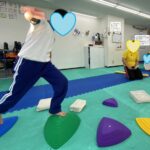 バランスパッド渡りは、言われた数でゴールまで目指しました✨お友達は考えながら進むことができました(≧▽≦)