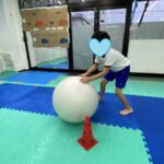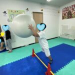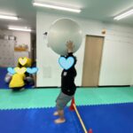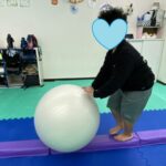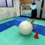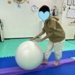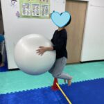 高さのある平均台上と不安定な平均台上をボールを落とさないように進みます😁