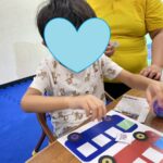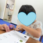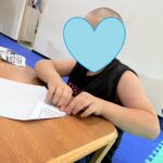 線むすびや名前のなぞり書き、のりを使って貼る指先の巧緻運動を行いました😉
