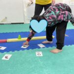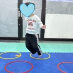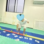 今日の運動あそびは、サーキット(平均台手を広げて渡る・フープ前後カンガルー・平均台1本カニ歩き)です💪