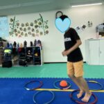 フープ内にマーカーを置かなければいけない目標と、マーカーとフープの位置を確認しながら走る強弱をつけて、空間認知力を養いました💪