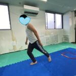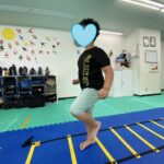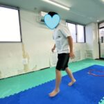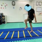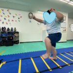 バランス力:片足でのジャンプ、着地をするときにフラフラしないでまっすぐ進むことができる