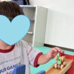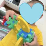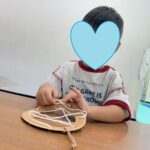 小さい穴に毛糸を通すことが指先の巧緻運動にもなります✨