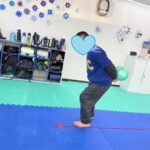 身体のコントロール:カンガルー姿勢を維持して、斜め前方にジャンプする、膝のクッションを使ってジャンプすることができる、着地の際にフラフラしない