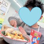 『わぁ~ハンバーグだ!』、『唐揚げ食べた~い』と、キラキラした目で見つめる姿がありました( ´艸`)