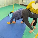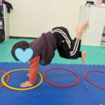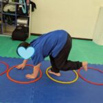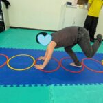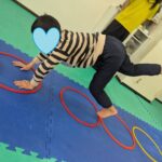 運動あそびは、サーキット(フープ片足クマ・クモの巣反転ジャンプ)です💪