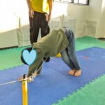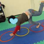 支持力:片足クマでフープを飛び越えるだけの腕の力が育てる