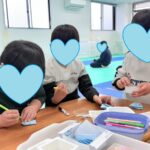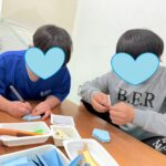 入室後すぐに、豆まき用枡のデコレーションをしました😁