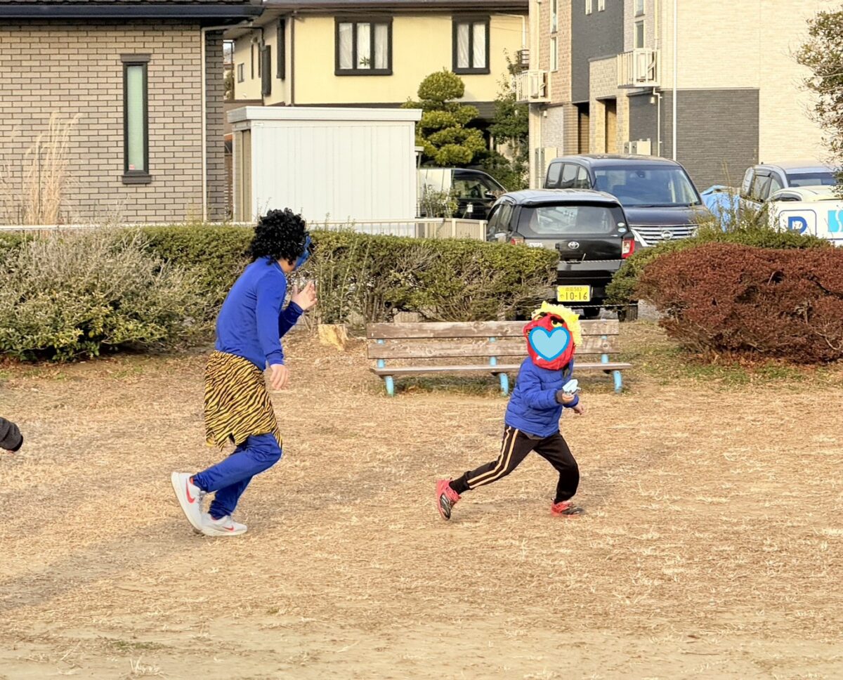 手持ちの豆がなくなっても、鬼を追いかけ続けていたお友達(≧▽≦)