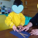 まずは、台紙にマスキングテープを貼り、(枝になります。)花びらになる紙に好きな色のペンで塗り、形を整えて、霧吹きで水をかけると…ペンが滲んできれいな模様に✨上手にできましたね👏✨