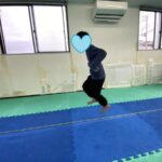 身体のコントロール:カンガルー姿勢を維持して、斜め前方にジャンプする、膝のクッションを使ってジャンプすることができる、着地の際にフラフラしない