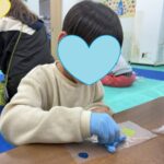 ②クレヨンで描いた上を綿でこすって、綿に色付けします✨